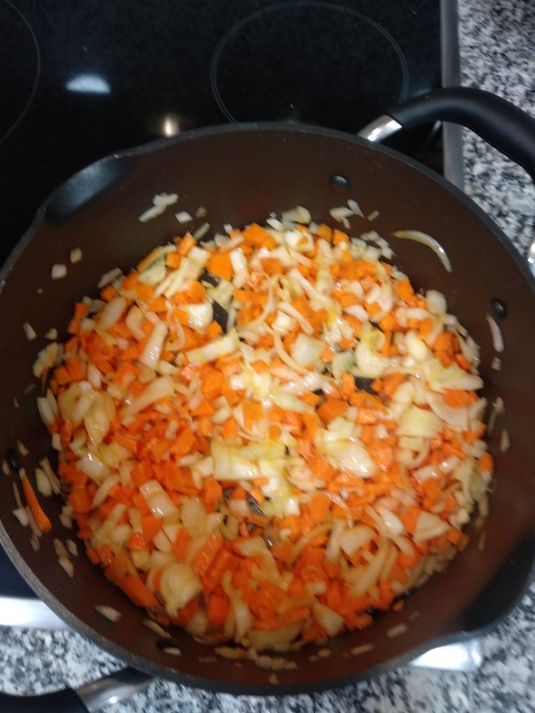 • Cortar la cebolla y la zanahoria a cuadraditos pequeños