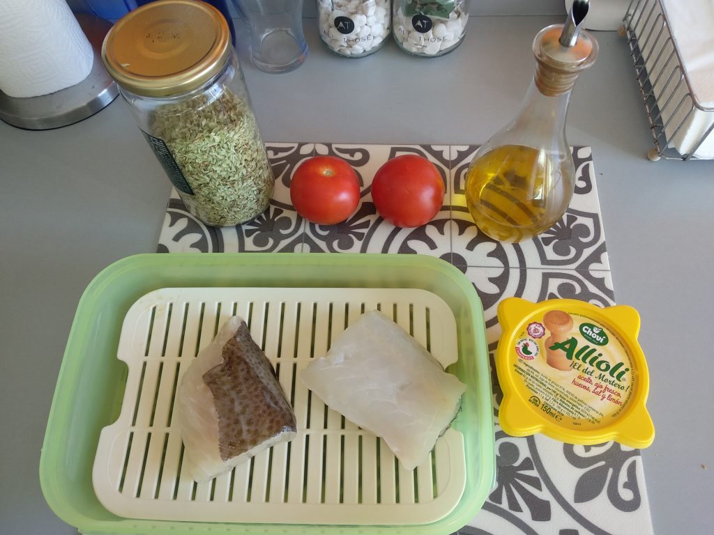 Esta receta la he sacado del libro de recetas de congelados la Sirena, ya que también compré el bacalao congelado allí. El allioli lo compré ya hecho.