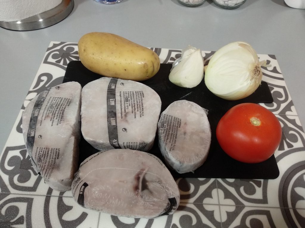 • Tres o cuatro rodajas de merluza congelada. Yo compro merluza austral en La Sirena.