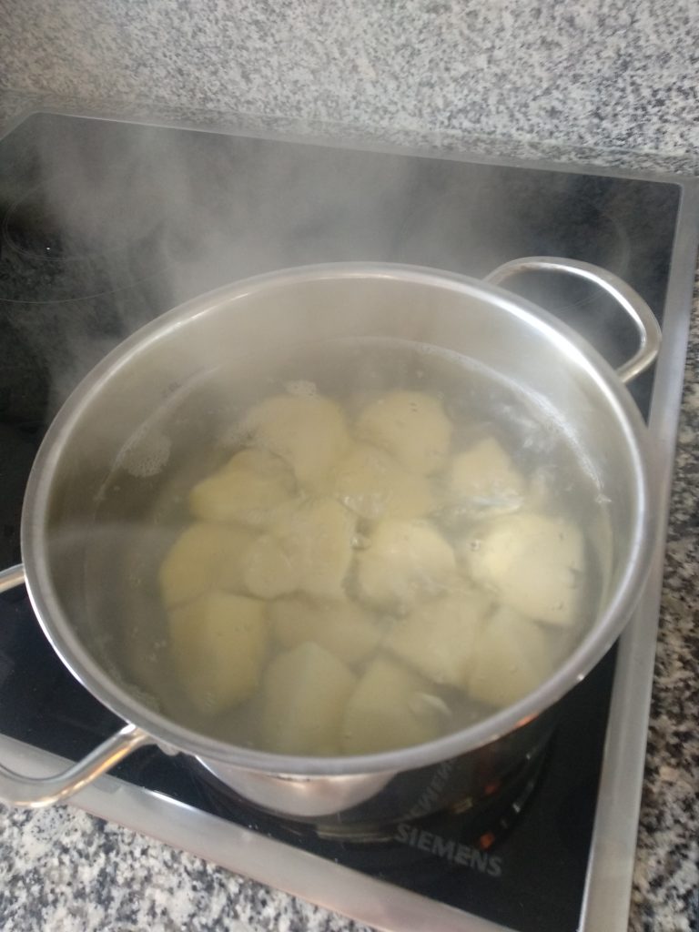 - hervir las patatas en agua con sal durante 15 minutos hasta que estén blandas